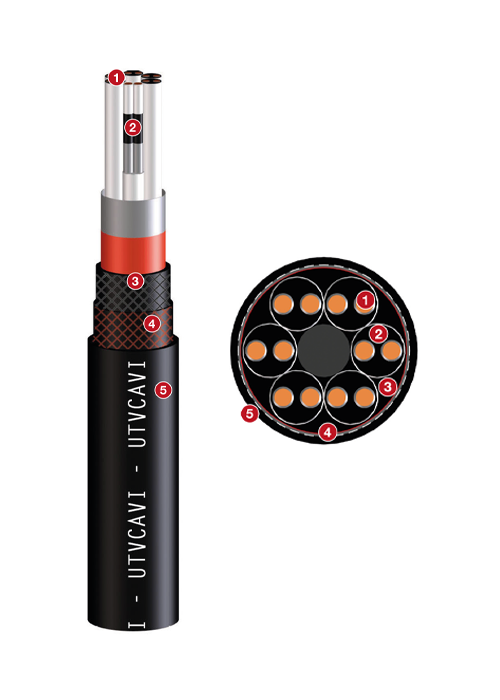 Flexible power cables for use on connecting movable parts of machine tools and any material handling equipment (i.e. Stacker/reclaimer, ship to shore crane, container crane festoon, grabtype ship unloading, gantry festoons, timber crane festoons, etc.). Suitable for any energy supply on cable reels and festoon systems associated to high mechanical stresses, frequent bending/torsional operation, and fast movement with strong acceleration.